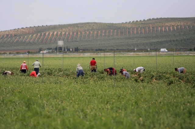 La mano de obra necesaria para la recolección de ajo brinda a la comarca de Antequera una opción de trabajo temporal durante estas fechas que ronda los 14.000 peones durante la campaña, sin contabilizar la mano de obra en fábrica.