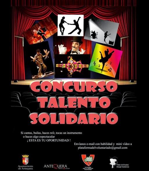 ¿Cuál es tu talento? A ver, piensa… Seguro que tienes alguno o, incluso, más de uno. Pues bien, ponlos en valor participando en el Concurso Talento Solidario que organiza la Plataforma Voluntariado Comarca Antequera. Para ello, tan solo tendrás que enviar un correo electrónico, adjuntando un vídeo breve en el que muestres tu habilidad para el baile, la música, la interpretación, etc., a la dirección de correo electrónico plataformadelvoluntariado@gmail.com. ¡No desaproveches esta oportunidad!