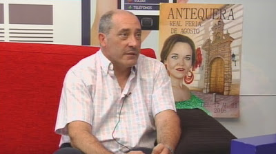 cartel anunciador de la Real Feria de Agosto en compañía del protagonista, el