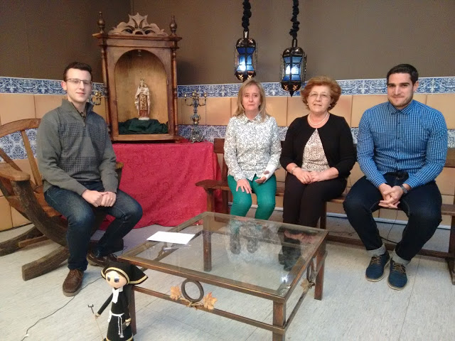 Esta semana visita nuestro plató Virtudes Pérez, (centro del banco, acompañada de miembros de su Junta Directiva, como el nuevo HM de Trono), que es la nueva presidenta de la Asociación de Maria Auxiliadora de Antequera.