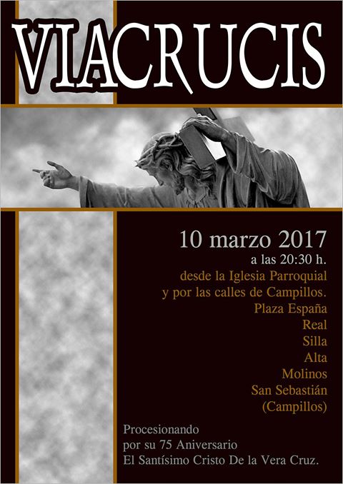 La Agrupación de Cofradías de Campillos celebra este viernes 10 de marzo a las 20.30 horas su Via Crucis que este año tendrá como imagen central el Santísimo Cristo de la Veracruz con motivo de su 75 Aniversario.