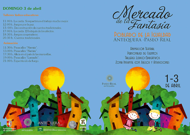 Este viernes 1 de abril y hasta el domingo día 3 se celebrará el ‘Mercado de la Fantasía, Poblado de la Igualdad‘, un espacio lúdico-educativo con actividades y talleres para promover la igualdad en la población infantil (niños y niñas de 4 a 10 años), que se iba a realizar con motivo del Día Internacional de la Mujer y que tuvo que ser suspendido hace algunas semanas por las inclemencias meteorológicas. Esta actividad es gratuita y se desarrollará en el Paseo Real. Los espacios dentro del poblado serán: