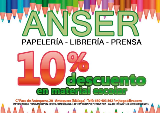 10% de descuento en material escolar en Papelería Anser