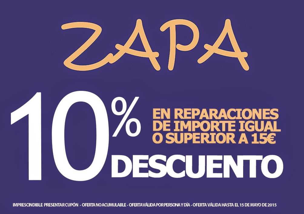 10% de descuento en reparaciones de un importe igual o superior a 15€ en Zapa