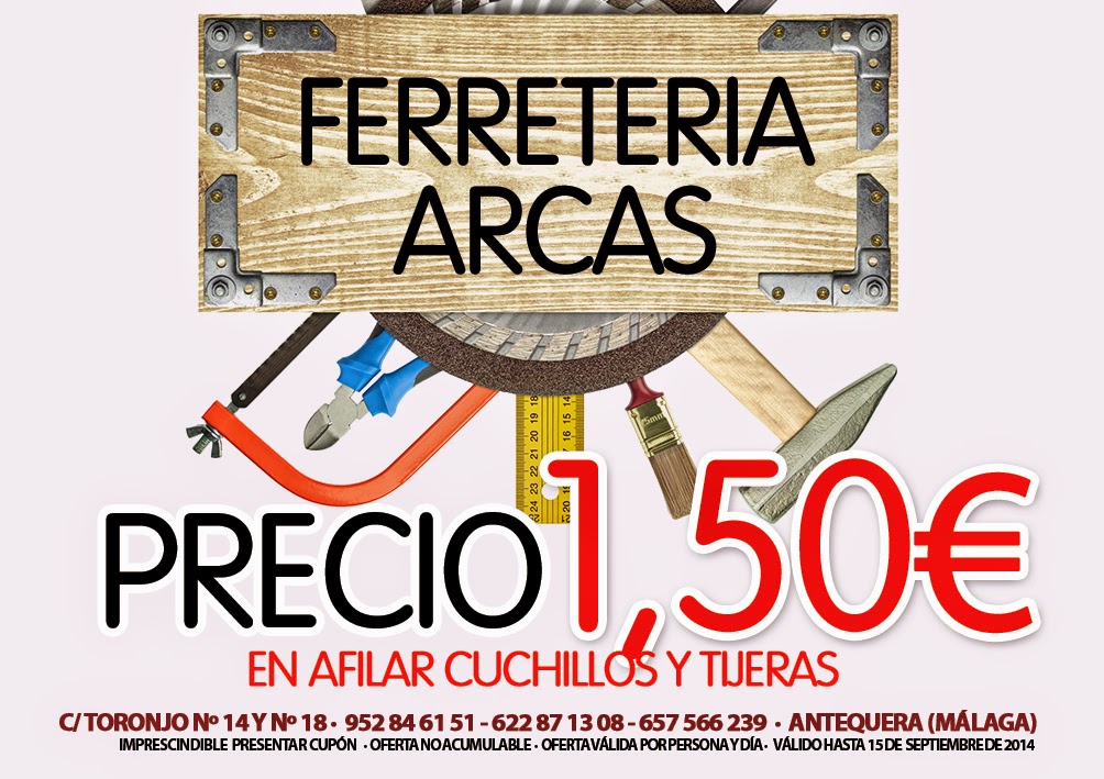 [CUPÓN] 1,50€ afilar tus cuchillos o tijeras si presentas este cupón en Ferretería Arcas