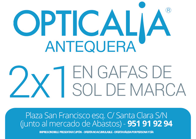 2 X 1 en gafas de sol de marca en Opticalia Antequera.