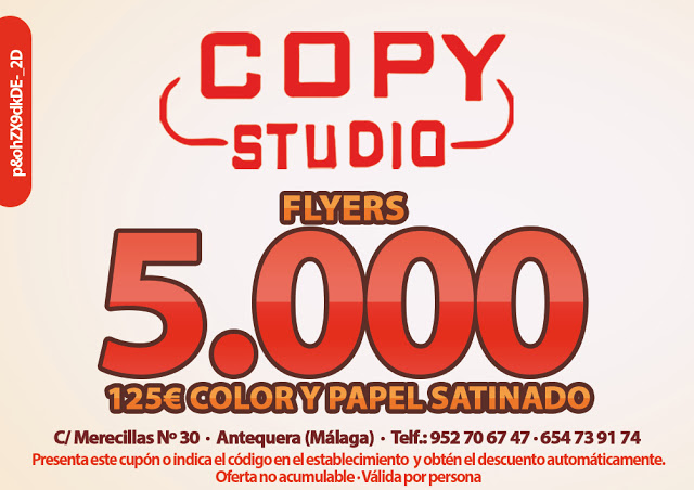 5000 flyers en color y papel satinado en Copy Studio por 125 € presentando este cupón.