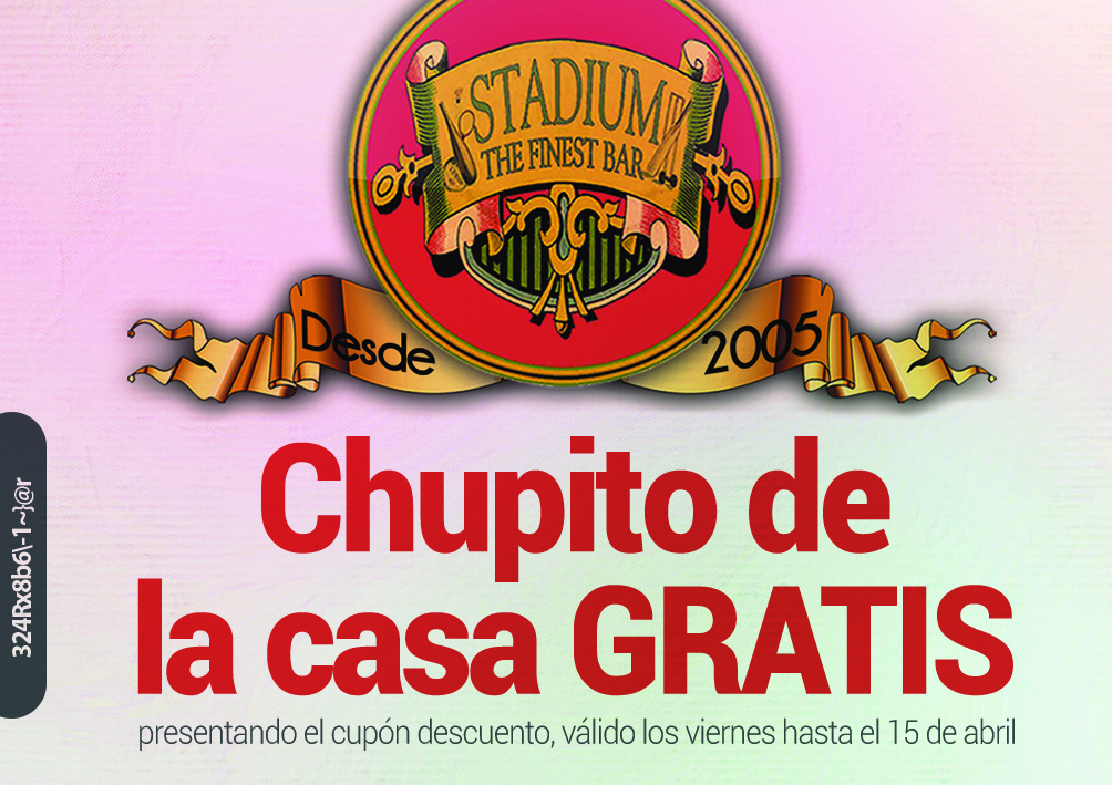 Todos los viernes, presenta este cupón en Pub Stadium y consigue un chupito de la casa gratis. Hasta el 15 de mayo