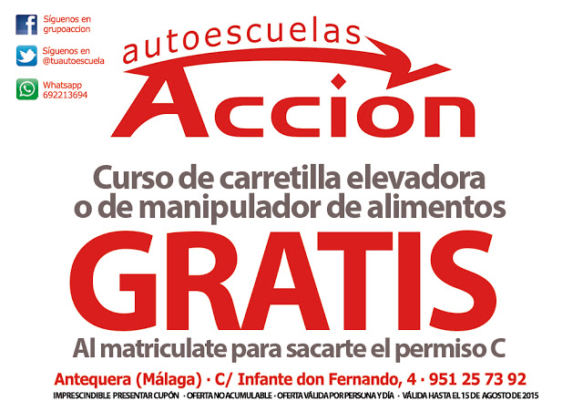Curso de carretilla elevadora o manipulador de alimentos GRATIS al matricularte para sacarte el permiso C en Autoescuelas Acción.