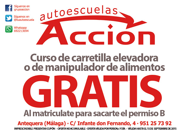 Curso de carretilla elevadora o manipulador de alimentos GRATIS al matricularte para sacarte el permiso B en Autoescuelas Acción.