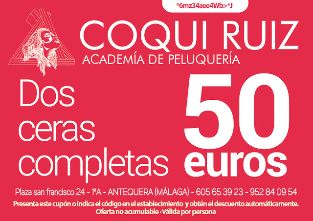 Inactivos [CUPÓN] Dos ceras completas por 50 € en Coqui Ruiz Última actualización 14 de marzo de 2025 12:53 admin Compartir Compartir Dos ceras completas por 50 € Enseña este cupón imprimiéndolo o directamente desde tu móvil en el establecimiento. Están en Plaza San Francisco, 24 1ºA en Antequera, teléfonos 952 84 09 54 / 676 81 95 38 Comparte este artículo Facebook Copiar link Imprimir No hay comentarios Deja una respuesta Cancelar la respuestaTu dirección de correo electrónico no será publicada. Los campos obligatorios están marcados con *Comentario * Nombre * Correo electrónico * Web Guarda mi nombre, correo electrónico y web en este navegador para la próxima vez que comente. Últimas noticias Farmacias de Guardia en Antequera – Abril 2025 14 de marzo de 2025 Ese nadie 14 de marzo de 2025 Concluye la adecuación del camino de arroyo Cerezo en Villanueva del Rosario tras una inversión de 253.000 euros 14 de marzo de 2025 PSOE e IU solicitan al PP la adhesión de Archidona a la futura Mancomunidad de Municipios 14 de marzo de 2025 Las lluvias de marzo dejan 230 litros en Antequera y un consumo mínimo garantizado para 3 años 14 de marzo de 2025 Lo más leido Farmacias de Guardia en Antequera – Abril 2025 14 de marzo de 2025 Ese nadie 14 de marzo de 2025 Concluye la adecuación del camino de arroyo Cerezo en Villanueva del Rosario tras una inversión de 253.000 euros 14 de marzo de 2025 PSOE e IU solicitan al PP la adhesión de Archidona a la futura Mancomunidad de Municipios 14 de marzo de 2025 Las lluvias de marzo dejan 230 litros en Antequera y un consumo mínimo garantizado para 3 años 14 de marzo de 2025 Síguenos 304.9kMe gusta3.04MSeguir304.9kPin844.87MSeguir40.49MSuscribirse39.5kSeguir