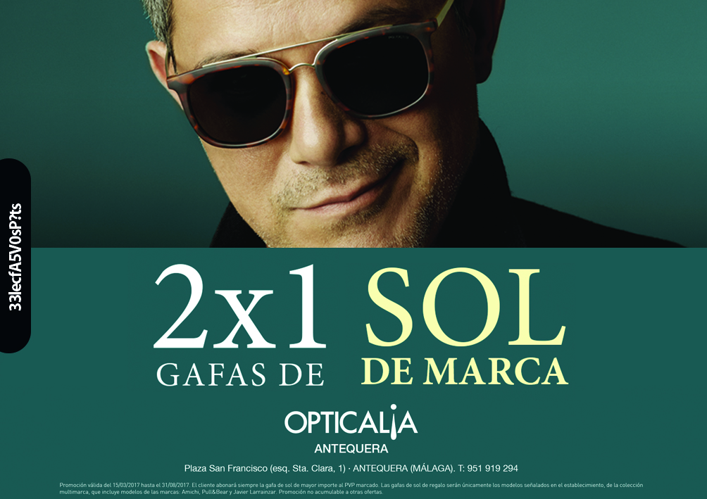 Hasta finales de verano tienen en vigor esta promoción. El cliente abonará la gafa de sol de mayor importe al PVP marcado. Las gafas de sol de regalo serán únicamente los modelos señalados en el establecimiento, de la colección de multimarca, que incluye modelos de las marcas Amichi, Pull&Bear, Javier Larrainzar.