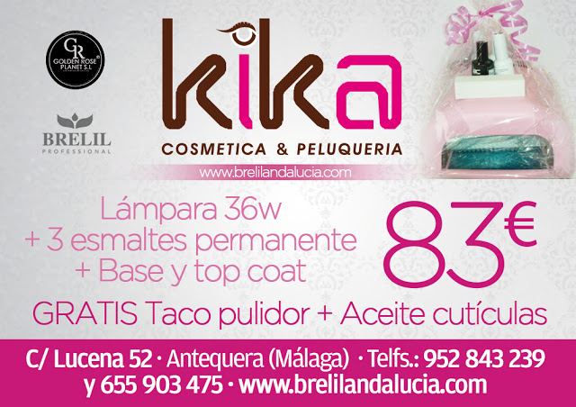 Lámpara 36w más tres esmaltes permanentes más base y top coat por 83 €, además gratis taco pulidos más aceite para cutículas.