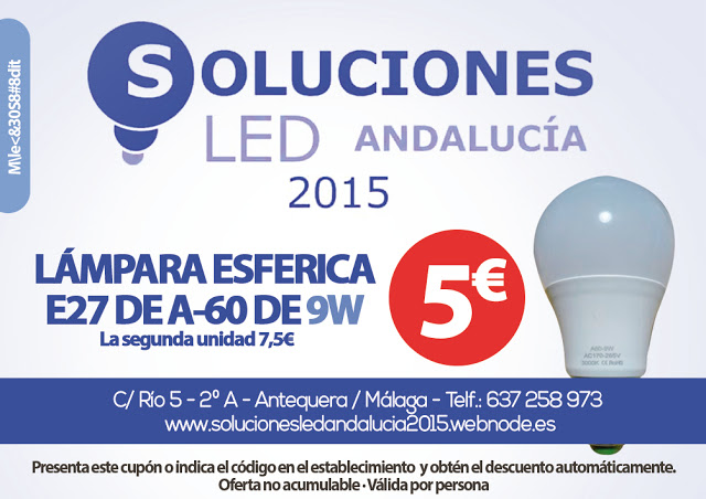 Lámpara esférica E27 de A-60 de 9W por 5€ y la segunda unidad 7,5 €