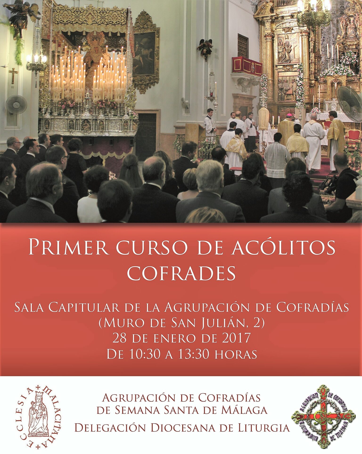 La Diócesis celebra este sábado en la Agrupación un curso de acólitos cofrades. Es el primero que se organiza en Málaga, siendo impartido por el delegado diocesano de Liturgia, Alejandro Pérez Verdugo. Se impartirá entre las 10:30 y 13.30 horas
