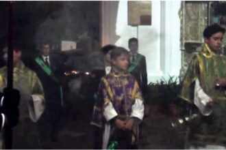 Los Estudiantes de Antequera realizan Via Crucis Claustral con el Cristo Verde en el interior de San Francisco