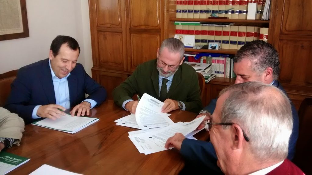 Esta mañana El delegado de la Junta de Andalucía, José Luis Ruiz Espejo y el Presidente de DCOOP, Pepe Moreno han firmado los trámites necesarios que hacen a la cooperativa receptora de 435.000 euros, un 42 por ciento del millón de euros que la Junta de Andalucía ha destinado a subvenciones para la lndustria Agropecuaria en toda Andalucía.