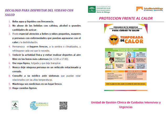 El Área de Salud Norte de Málaga presenta de cara al verano unos consejos de protección frente al calor.