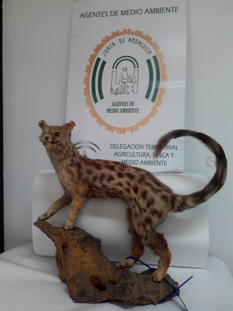 Agentes de Medio Ambiente de la Delegación Territorial de Medio Ambiente y Ordenación del Territorio de Málaga han decomisado un ejemplar de gineta naturalizada (disecada) en un establecimiento del municipio de Antequera.