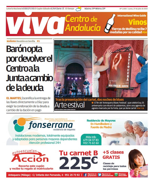 Viva Centro de Andalucía recoge hoy el anuncio del alcalde de Antequera, Manuel Barón, de escenificar la entrega de las llaves del centro de atletismo directamente a la presidente de la Junta de Andalucía, Susana Díaz, para reivindicar la promesa electoral realizada por el entonces consejero de Deporte sobre la predisposición de la administración autonómica a condonar la deuda de la parte municipal en la construcción de la infraestructura aceptando una dación en pago.