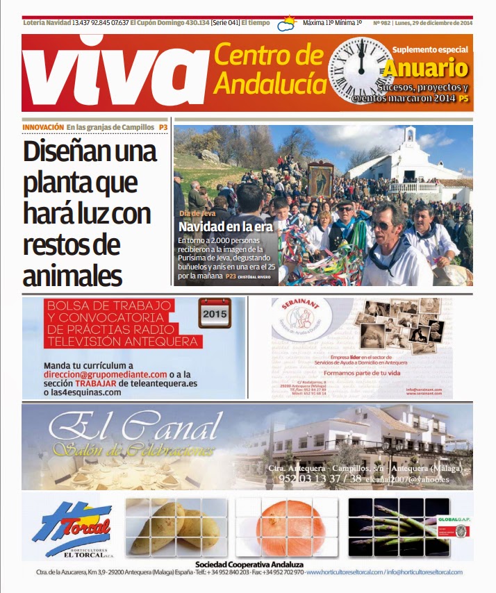 Igualmente no podemos por menos que llevar a la portada la imagen de la celebración tras dos años de la romería de Jeva, donde casi 2.000 personas alentados por el buen tiempo vivieron de una forma tradicional el día de Navidad desde primera hora del día 25 con una procesión desarrollada en torno a una era entre cánticos de pastorales y pandas de verdiales.