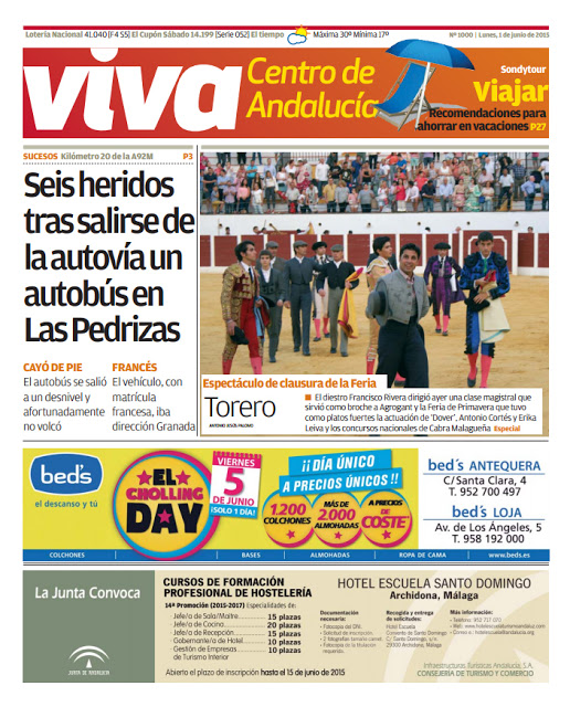 [DESCARGAR] Seis heridos tras salirse de la autovía un autobús en Las Pedrizas, espectáculo de clausura de la Feria en el periódico Viva de hoy