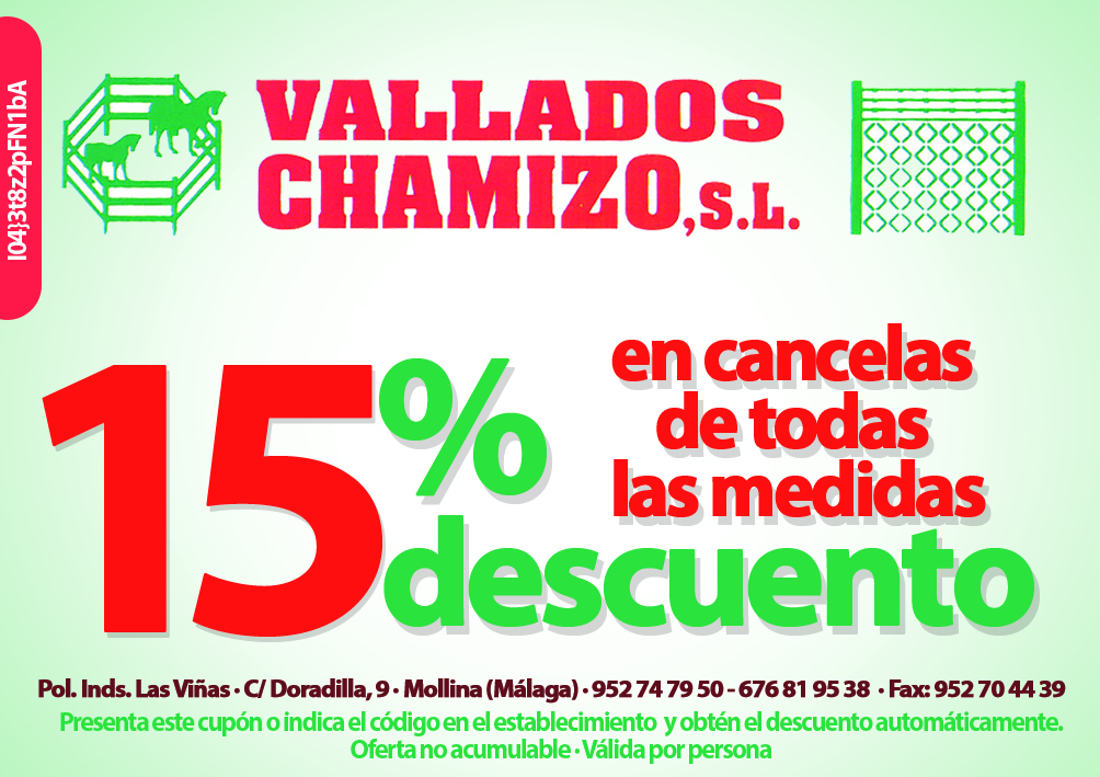 Vallados Chamizo es una empresa ubicada en Mollina que cuenta con más de 20 años de experiencia en el sector de los vallados. Puedes encontrar en sus instalaciones todo tipo de vallas, como de madera, metálicas puertas electrosoldadas.