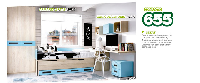 Dormitorio juvenil compuesto por compacto con cama oculta, armario y zona de estudio desde 655 € en MyMobel Antequera