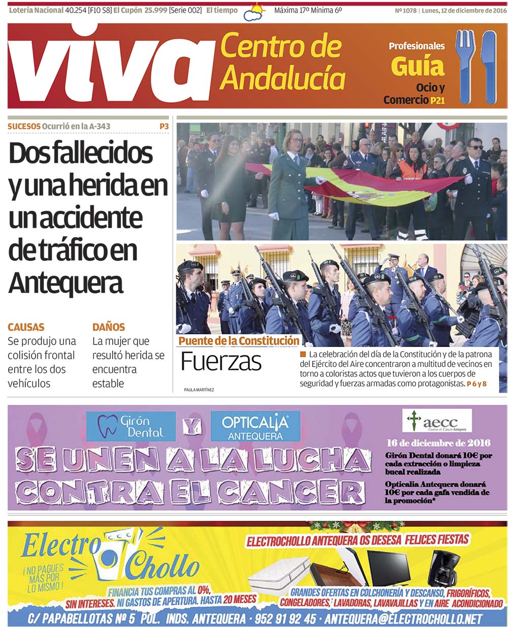 El accidente se produjo por una colisión frontal entre los dos vehículos, la mujer que resultó herida se encuentra estable. Otra de las noticias a destacar es la celebración del día de la Constitución y la patrona del Ejército del Aire.