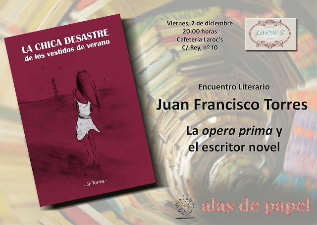 El colectivo literario Alas de Papel continúa organizando una serie de actividades para difundir la obra de autores antequeranos, aunando además la cultura con escenarios de la iniciativa privada que apuestan por ofrecer un valor añadido a su oferta comercial. Así, el próximo viernes, 2 de diciembre, a las 20 horas, la Cafetería Laroc’s acogerá la presentación del primer libro de Juan Francisco Torres, ‘La chica desastre de los vestidos de verano’. Será en el marco de un encuentro literario con el autor, que versará sobre la opera prima y el escritor novel.