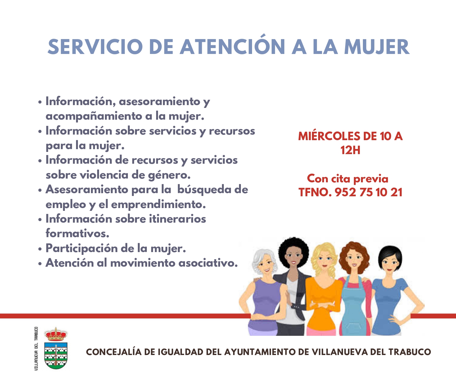 El Ayuntamiento de Villanueva del Trabuco, a través del área de Igualdad ha puesto en marcha el Servicio de Atención a la Mujer.