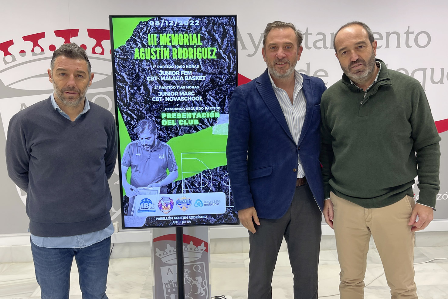 El teniente de alcalde delegado de Deportes, Juan Rosas, el presidente del Club Baloncesto Torcal (CBT), Rogelio Moreno, y Pedro Ruiz como responsable de Serainant (patrocinador principal del club) han presentado en la mañana de hoy la tercera edición del Memorial Agustín Rodríguez, que se disputará mañana jueves 8 de diciembre. Estará compuesto por dos partidos a disputar por parte de los equipos junior tanto de categoría masculino como femenina.