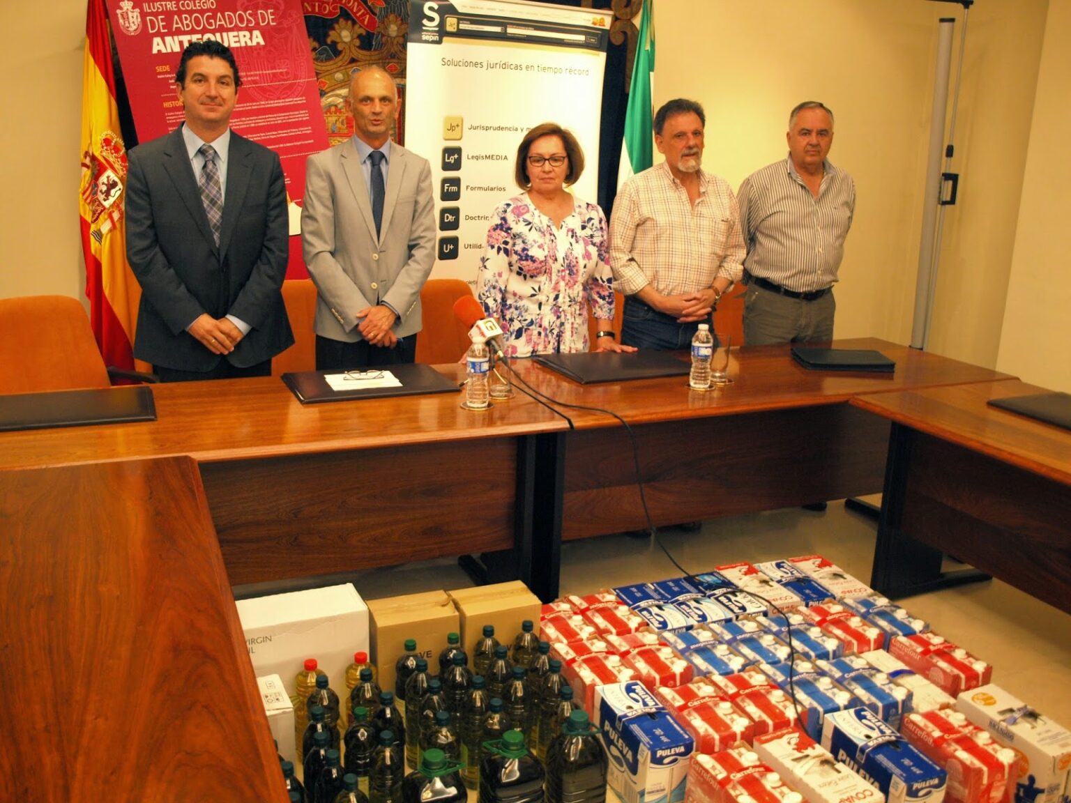 El Ilustre Colegio de Abogados de Antequera, representado en el decano local, José Manuel González, ha realizado en la mañana de hoy una donación de 600 litros de aceite y leche a Cáritas de la parroquia de El Salvador de Antequera. La iniciativa ha sido posible gracias a la editorial jurídica nacional Sepin, a través de la cual, los abogados han podido obtener una aplicación de tema jurídico para sus móviles a cambio de una donación al Colegio de leche o aceite que ahora irá destinada a los más necesitados, según ha comunicado el responsable de colectivos de la editorial madrileña, Jesús Abad.