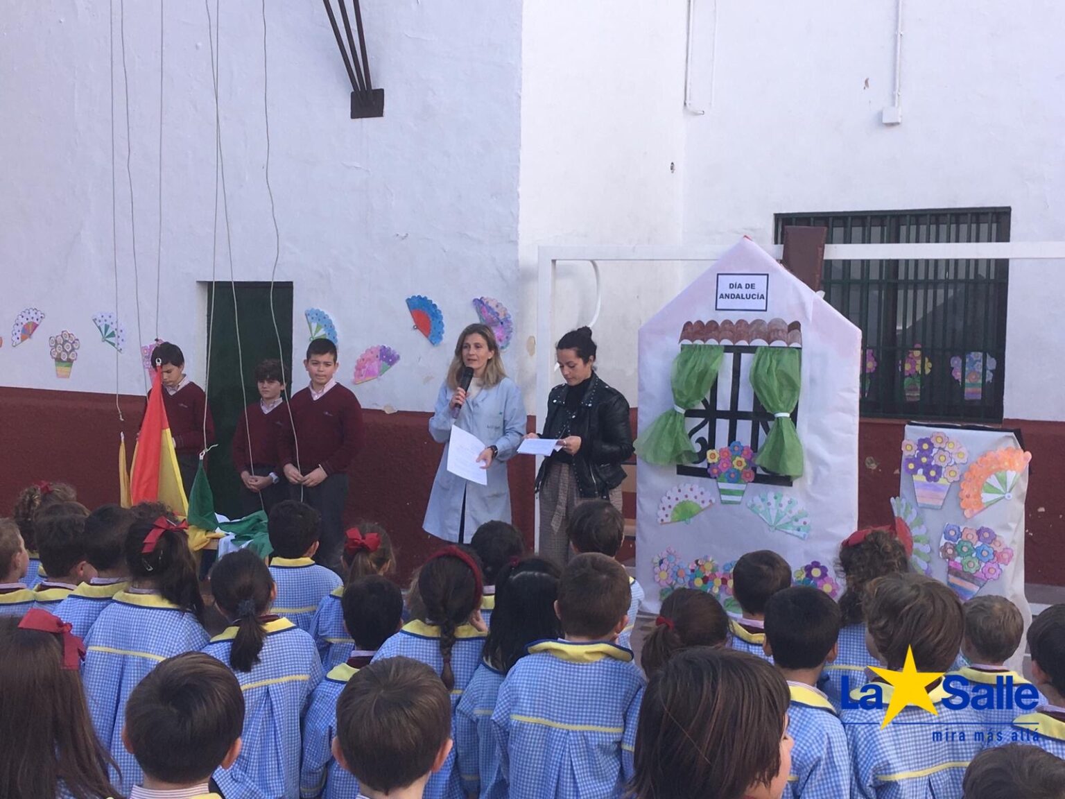 Todos en el patio del colegio, presenciaron un recital de poesías de nuestra tierra viajando a través de las diferentes provincias andaluzas a cargo de los alumnos del Tercer Ciclo de Educación Primaria.