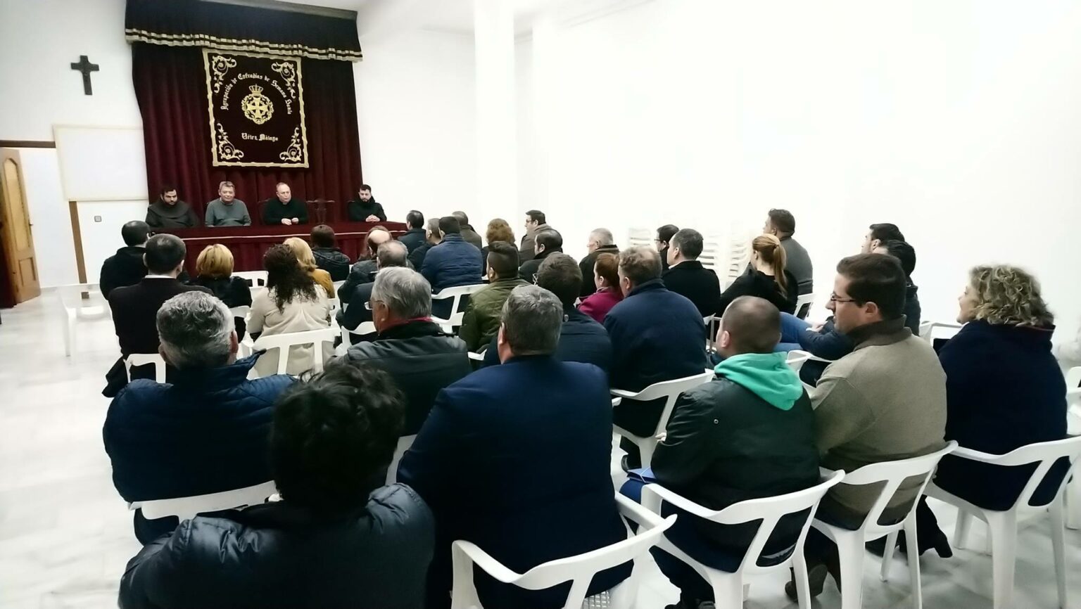 Tras realizar una visita previa a las dependencias, se llevó a cabo en el Salón de Actos la reunión del delegado con representantes de las 19 cofradías agrupadas, a la que también fueron invitadas las hermandades de gloria del municipio.
