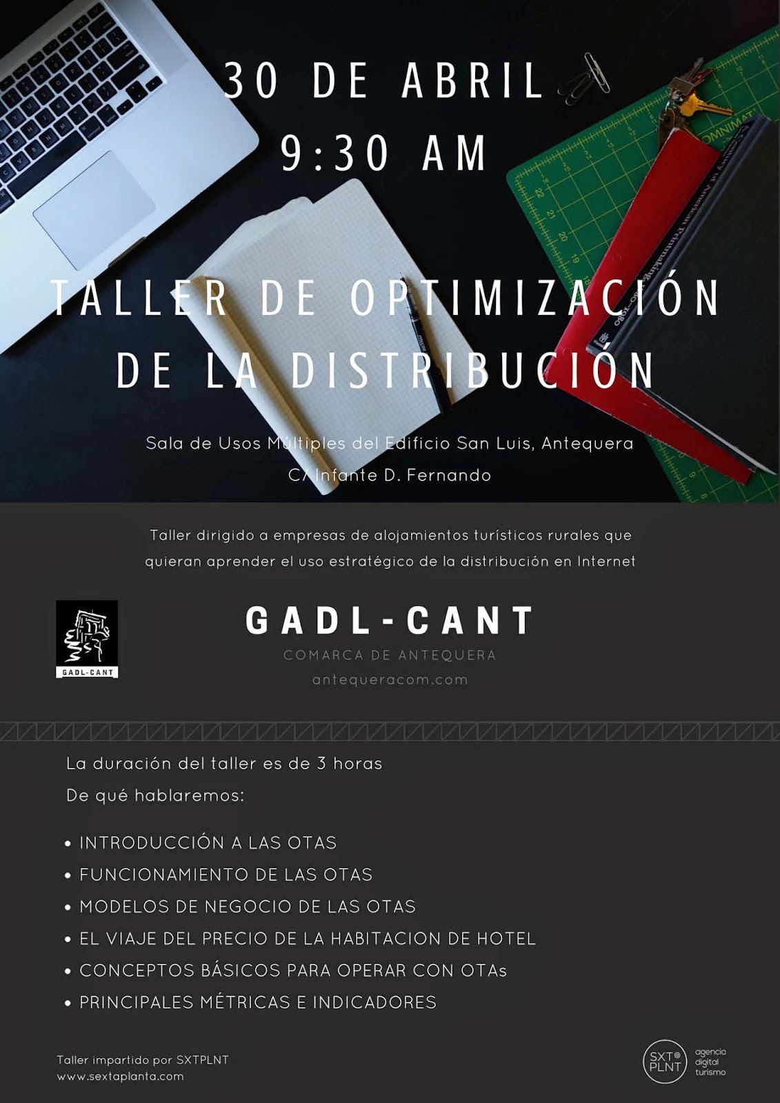Se trata de un Taller de Optimización de la Distribución de Alojamientos Turísticos en Internet promovido por el Grupo de Acción y Desarrollo Local Comarca de Antequera dentro de su Plan de Dinamización Turística de la Comarca de Antequera y en colaboración con el Ayuntamiento.