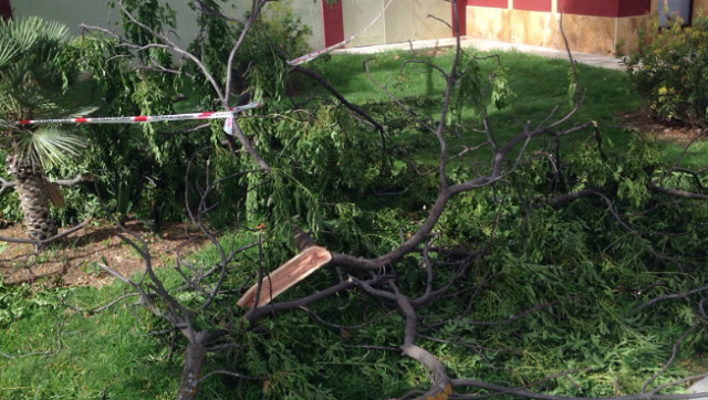 En la noche del viernes se origino un pequeño huracán en la zona del Paseo Real ocasionando la caída de ramas y algunos desperfectos que se fueron solucionando en el día de ayer. Una de las zonas más afectadas fue la de la arboleda del parque infantil.