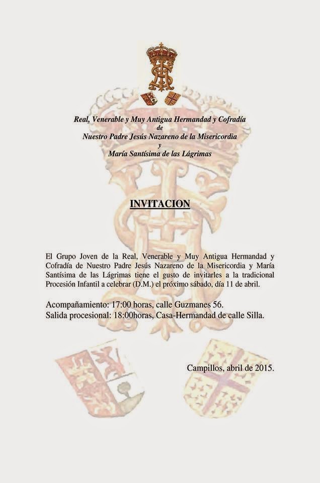 El Grupo Joven de la Cofradía de Jesús Nazareno de Campillos organiza el próximo sábado 11 de Abril una nueva edición de su Procesión Infantil.