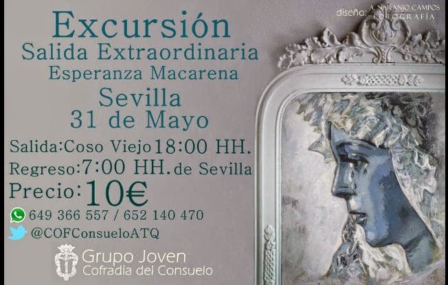 El grupo joven de la Hermandad del Consuelo de Antequera  ha organizado viaje para la Procesión Extraordinaria que desarrollará la venerada imagen de la Esperanza Macarena con motivo de los 50 años de su Coronación Canónica.