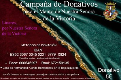 El Grupo Parroquial de Nuestro Padre Jesús de su Misericordia en su Tercera Caída, Nuestra Señora de La Victoria y San Juan Evangelista de Linares, pone en marcha una campaña titulada “Por un Manto para Nuestra Señora de la Victoria”