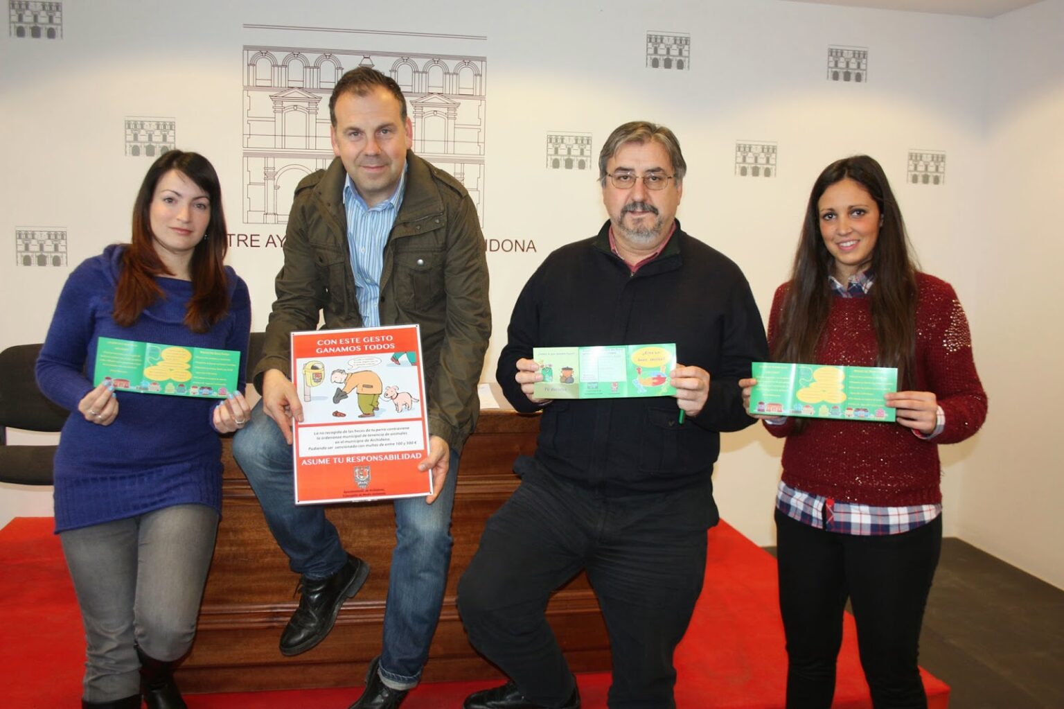 El alcalde de Archidona, Francisco Jiménez, el concejal de Medio Ambiente, Juan Antonio Lara y las trabajadoras del área de Medio Ambiente del programa Emplea@joven, Laura González y Sara Castellano, presentaron el Manual del Buen Vecino y la campaña de recogida de excrementos de mascotas, que forman parte del programa de concienciación y mejora del medio ambiente urbano del municipio.