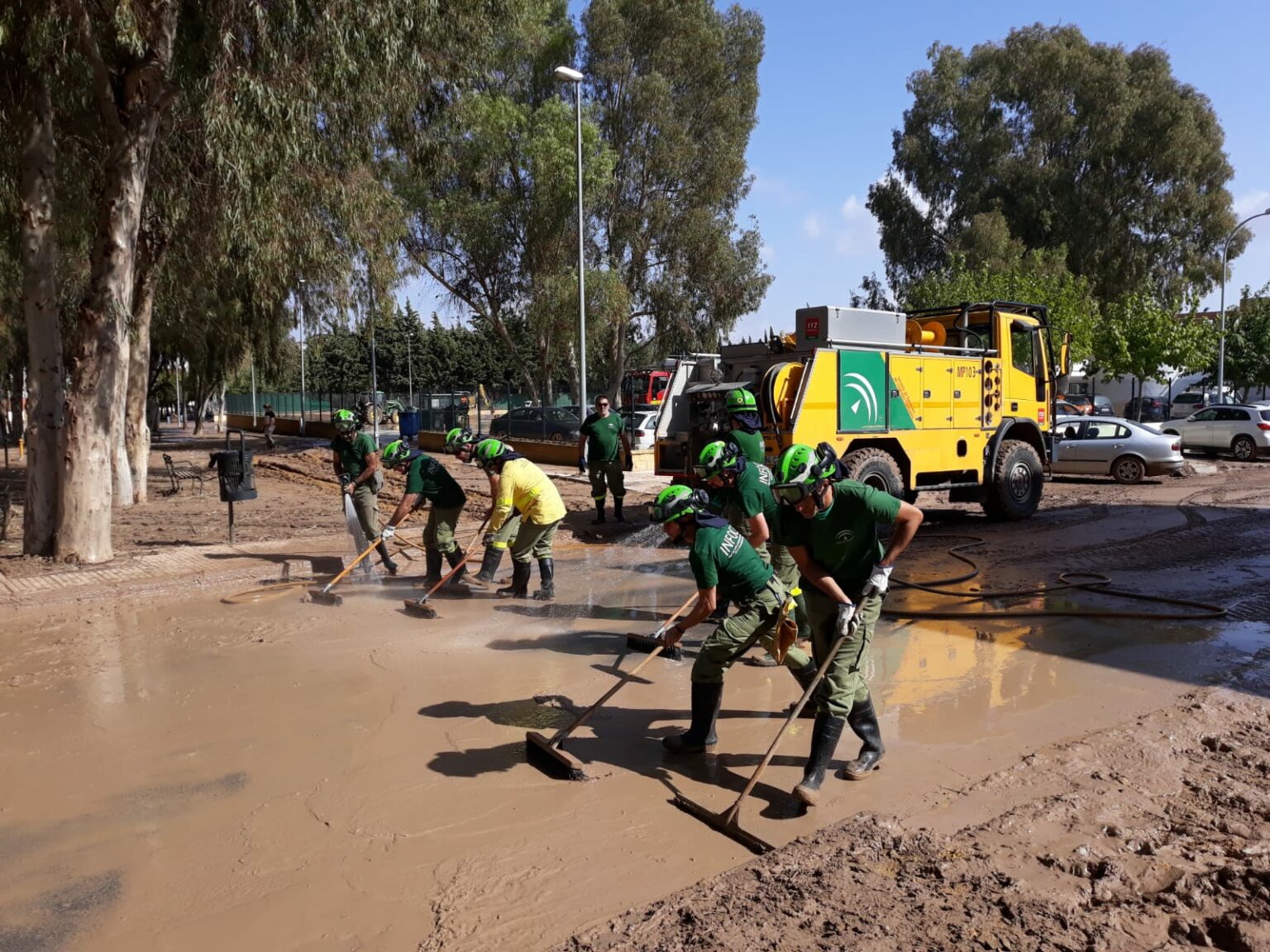 Los componentes de este dispositivo se movilizaron ayer desde primera hora hasta las provincias de Málaga y Sevilla por requerimiento de la Dirección de Emergencias del 112 Andalucía con motivo de las inundaciones acaecidas este pasado fin de semana. Este proceso se realiza en virtud del acuerdo marco suscrito entre las Consejerías de Justicia e Interior y Medio Ambiente y Ordenación del Territorial, de tal manera que los recursos están disponibles ante este tipo de emergencias ambientales.