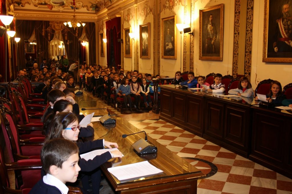 El regidor ha comenzado el acto presentando a los alumnos de los colegios María Inmaculada, San Juan y Romero Robledo que han intervenido en el día de hoy representando a cada uno de sus centros, así como a otros dos que han ejercido como secretarios del pleno. Estos últimos han leído el acta del pleno anterior, celebrado el 20 de noviembre de 2013, en el que se resaltó la importancia de cuidar el medio ambiente.