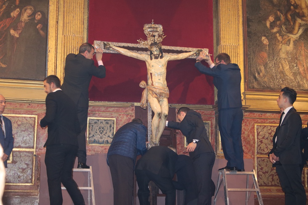 Tras no poderse llevar a cabo el año pasado debido al confinamiento, el Cristo de la Salud y de las Aguas bajará de su altar el próximo sábado, último del mes de abril, a las siete y media de la tarde. Tras la tradicional bajada, que este año a causa de la pandemia tampoco se llevará a cabo previamente el besapié, se celebrará Santa Misa en la iglesia de San Juan.