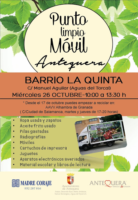 El Punto Limpio Móvil de Madre Coraje estará el miércoles día 26 en el Barrio de la Quinta de Antequera