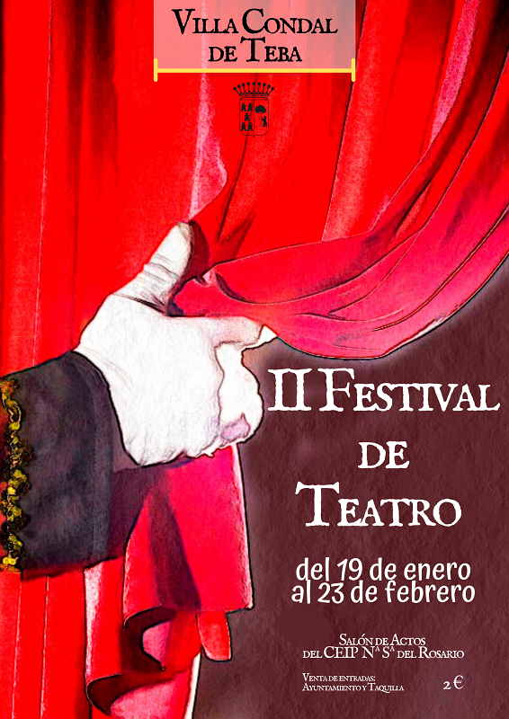 La segunda edición del festival de teatro de Teba arrancará el próximo 19 de enero con la obra ‘La Dama Duende’, una de las cinco obras seleccionadas de entre las 74 propuestas que serán representadas cada fin de semana a partir del día 19 de enero y hasta finales de febrero, con la Gala de cierre protagonizada por los alumnos y alumnas de la Escuela Municipal Infantil de Teatro de la localidad.
