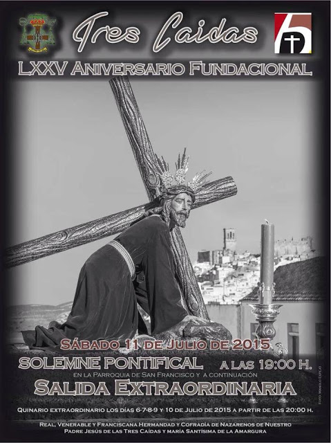 Con motivo del 75 Aniversario Fundacional este próximo sábado 11 de Julio el  Señor de las Tres Caídas de Arcos de la Frontera (Cádiz) saldrá en procesión extraordinaria. Para lo cual estrenará una