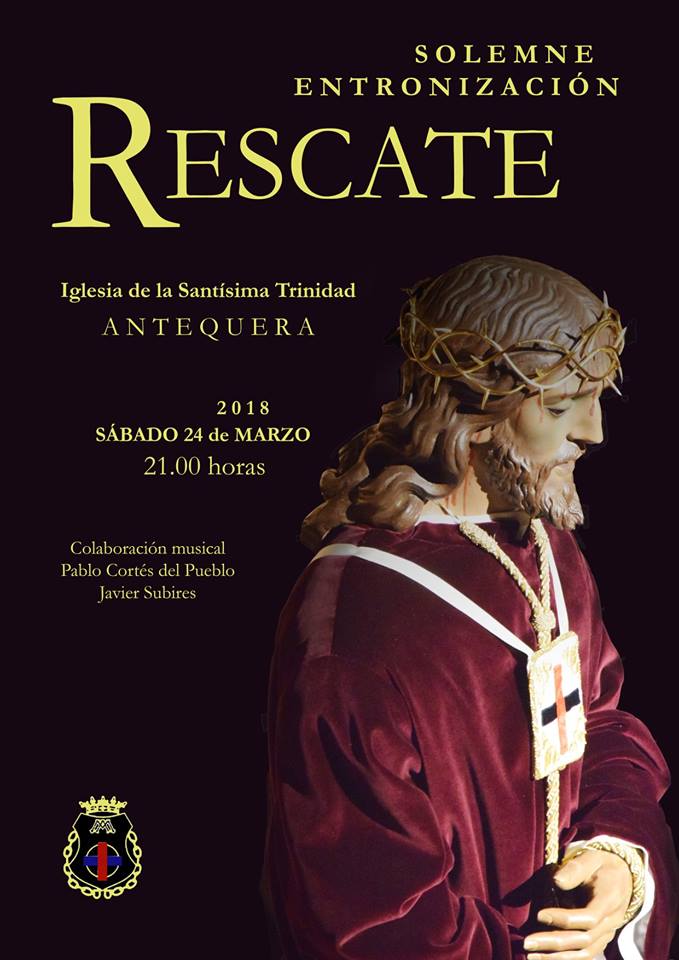 La Cofradía de Nuestro Padre Jesús del Rescate y María Santísima de la Piedad de Antequera, celebrará el próximo sábado 24 de marzo a las 21.00 horas, la Solemne Entronización del Señor.