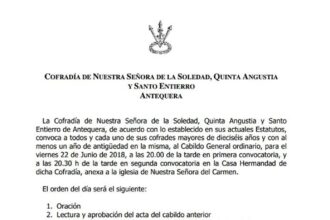 Finalmente, quieren mostrar su agradecimiento a todo el pueblo de Antequera que acompañó en el traslado de ida a la Catedral a la Soledad de Mena, cobijada bajo el palio de Nuestra Señora de la Soledad de Antequera.