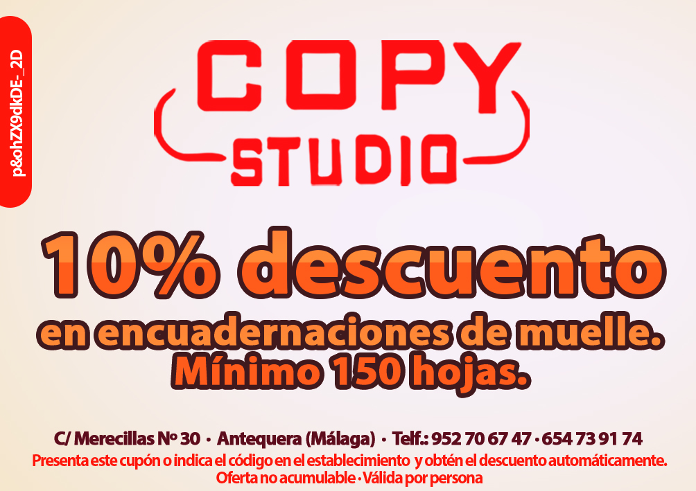 10 % de descuento en encuadernaciones de muelle, mínimo 150 hojas